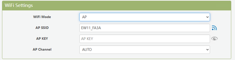A WiFi network in the format EW11_**** will be activated.
