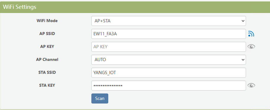 Enter your WIFI connection information in STA_SSID and STA_KEY. (Only 2.4G is supported)