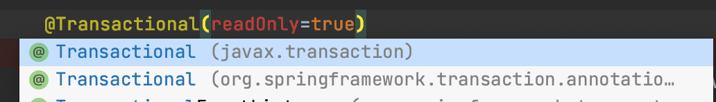 엥? @Transactional에는 readOnly 옵션이 없는데 이게 무슨일이죠? 없는 걸로 이야기를 하려고 하는 건가?