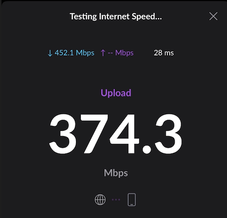 지금은 문을 모두 닫아도 374mbps가 넘는 아름다운 속도가 나오고 있다.