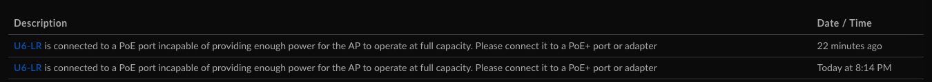 POE + 라는 스펙이어서 땡기는 전기가 부족하여 계속 재부팅 되고 있던 것 이었다.