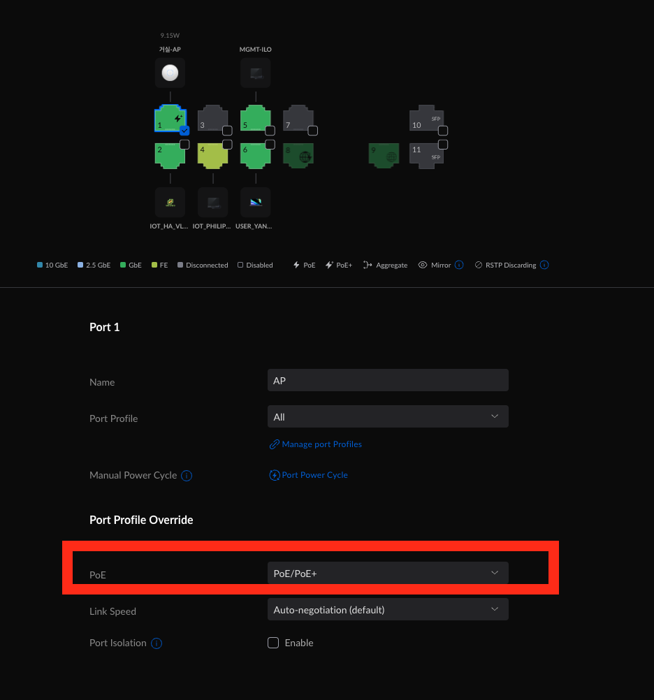 POE+로 설정해주니 문제 없이 설치가 완료 되었다.