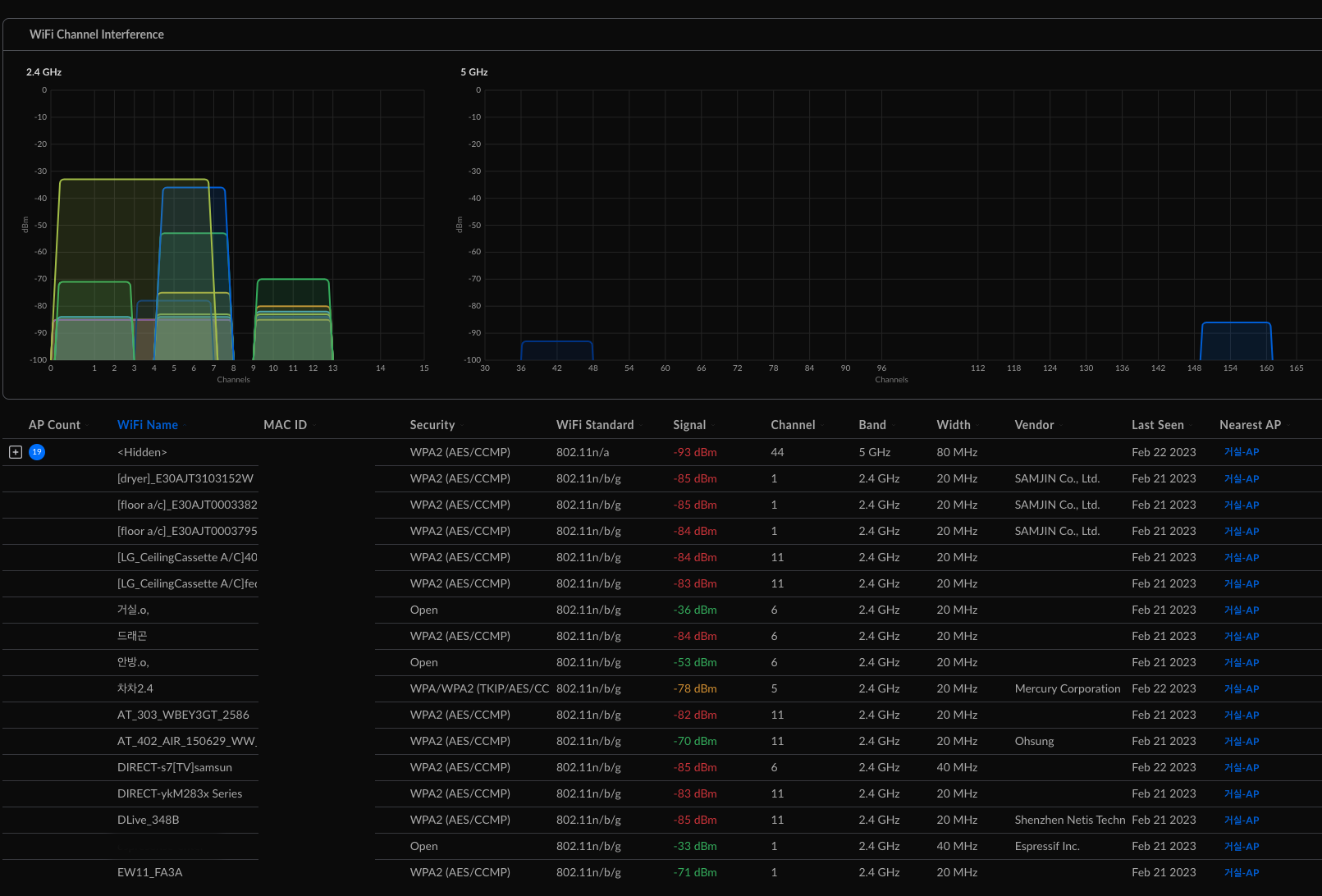 주변에 생각보다 간섭이 많다는 점과 더 재미있는건, 서울시 공공 와이파이가 한번씩 2.4GHz에서 튄다는 점이다 ㅡㅡ;;
